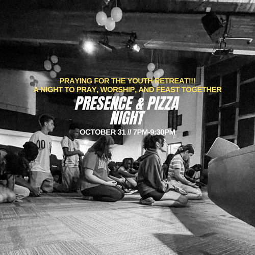 Presence nights are nights where we intentionally seek God through prayer and worship together. Our main focus this Friday will be praying into the youth retreat happening in less than 2 weeks. God moves mightily when His people get together to seek Him and pray!