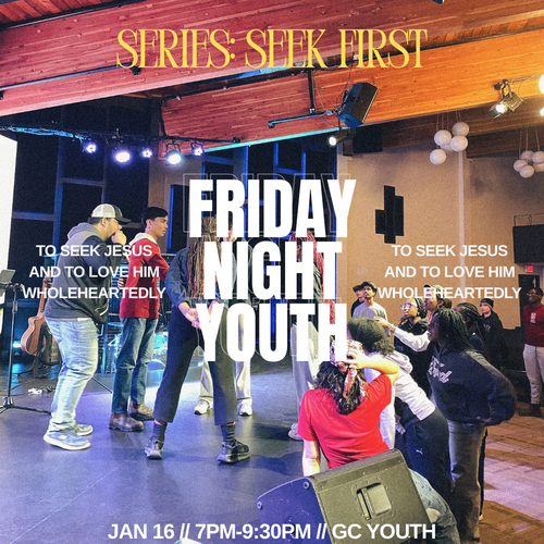We are continuing our series this Friday, Seek First, as we discuss the topic and discipline of fasting as a follower of Christ. We'd love to see the youth come out for a time to grow in relationship with one another and grow in their faith in the Lord! I also heard that Pastor Gabriel and Soraya will be announcing the gender of their baby at youth this Friday! Don't miss it!