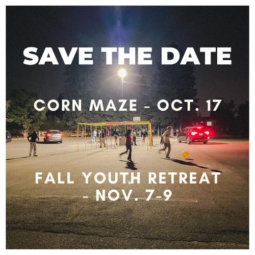 Grab your calendar and save the following dates! We're going to the Corn Maze October 17 and our Fall Youth Retreat at Camp Nakamun is coming up. Stay tuned for more information soon.